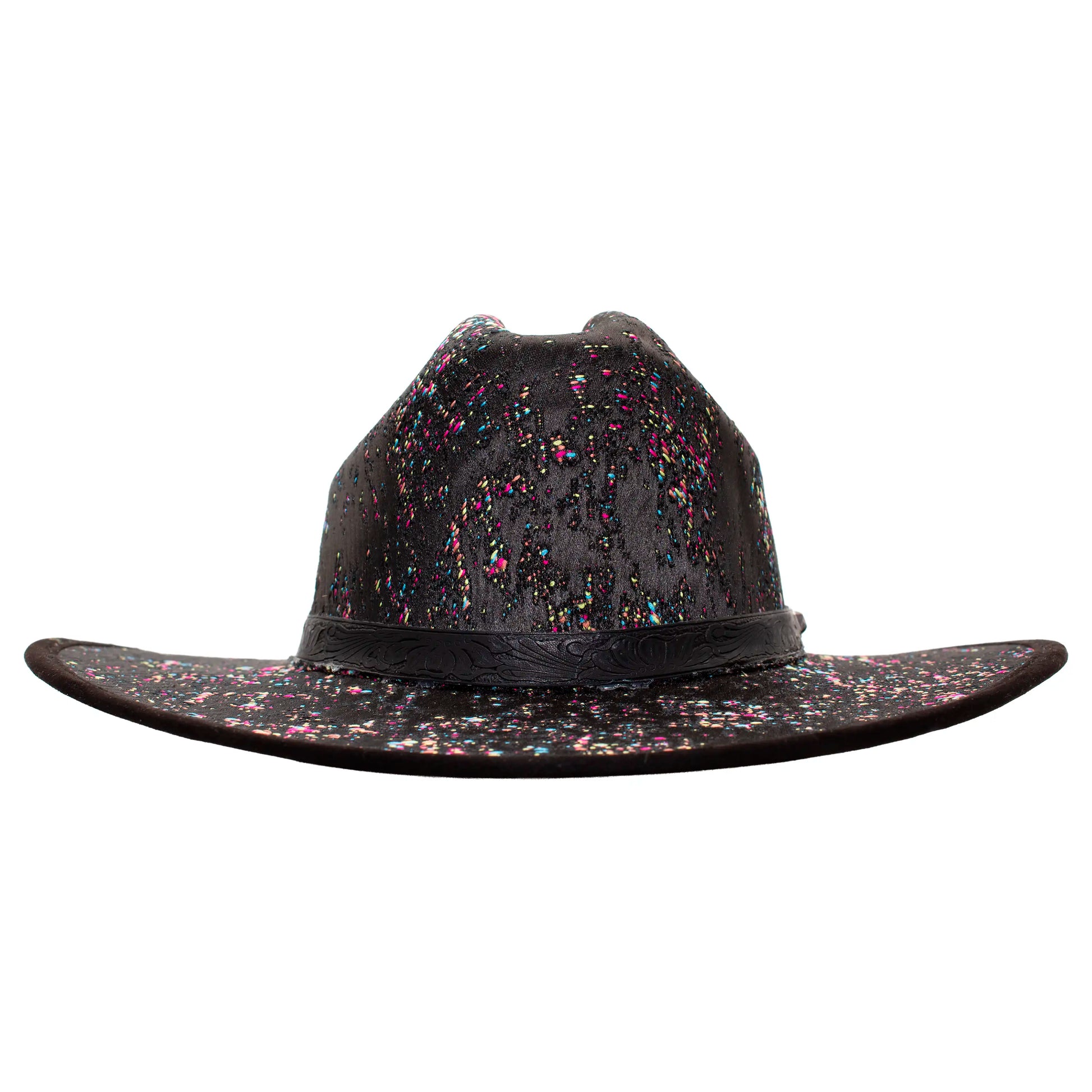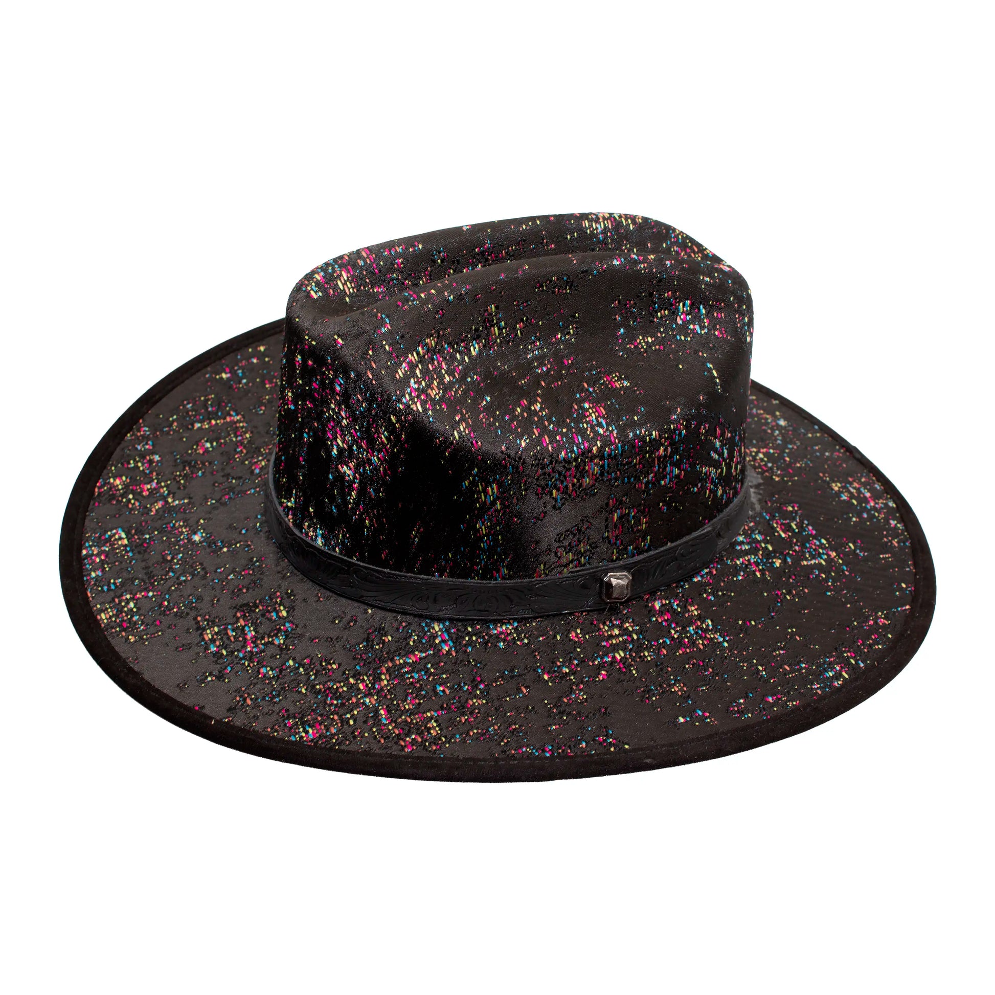 The Galaxia Hat is an accessory that takes your style beyond everyday boundaries. Crafted from high-quality textiles with a galaxy-inspired print, each angle reveals a universe of deep, vibrant colors that catch the light—and attention. The black leather band adds elegant contrast, making this hat a versatile complement for urban, creative, or bold looks.