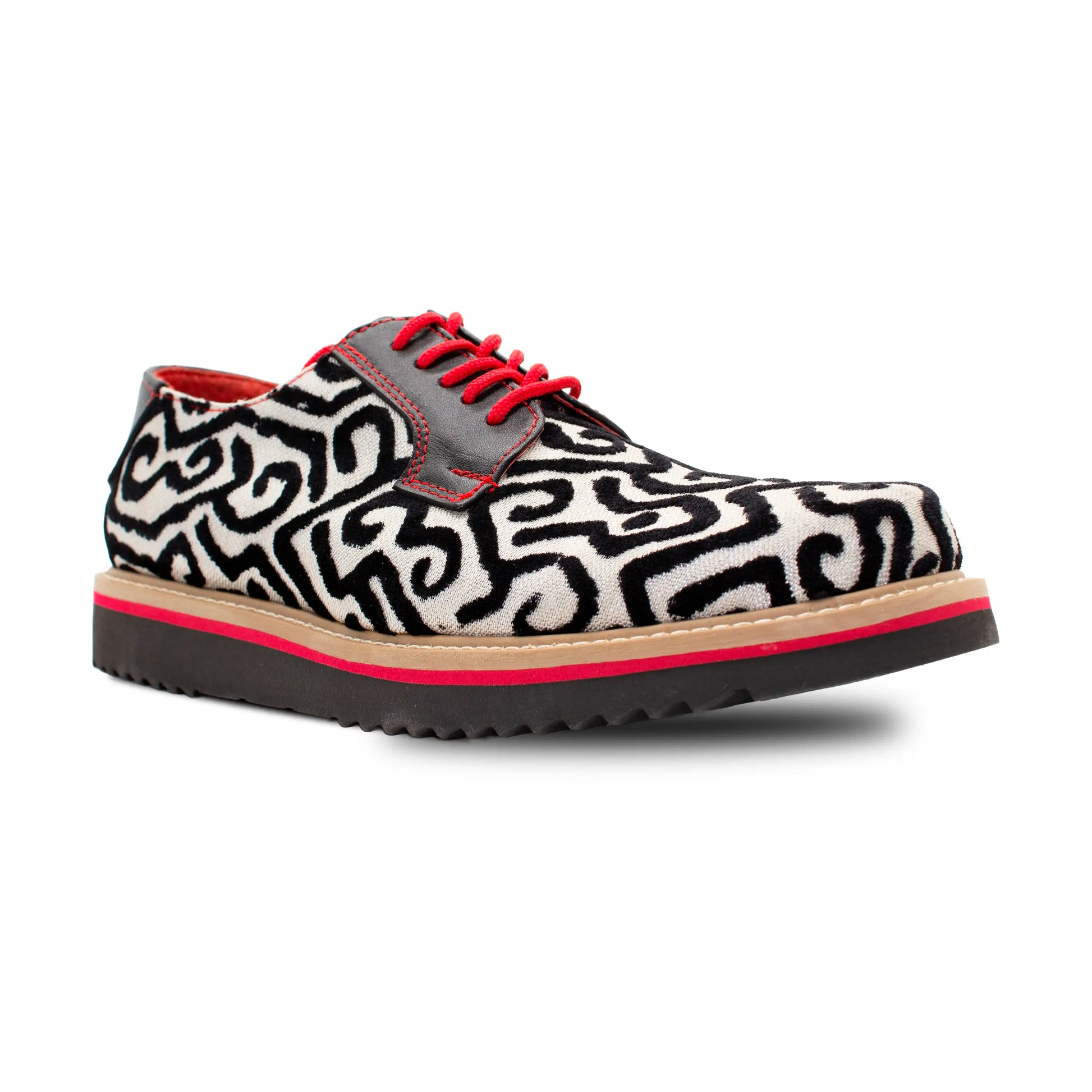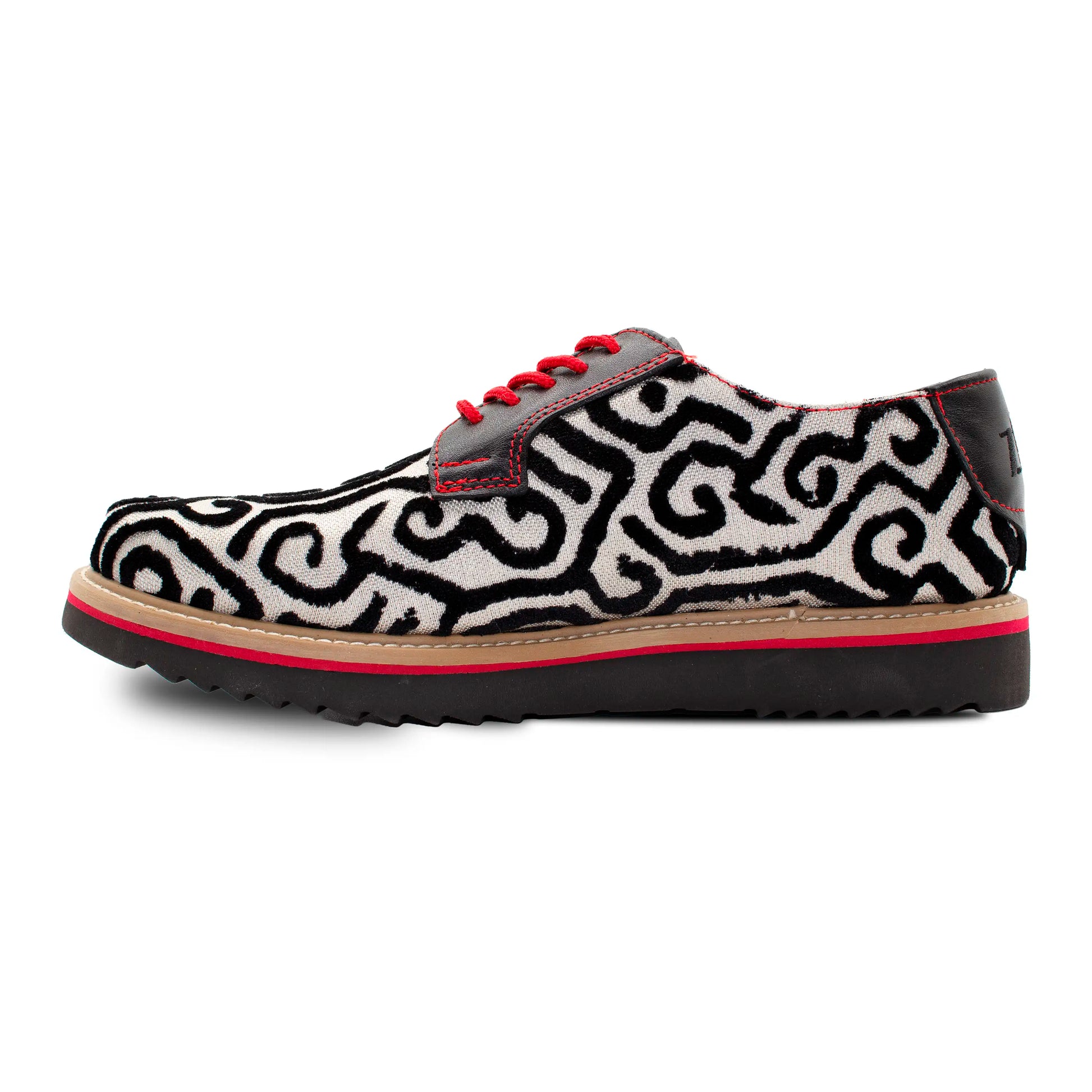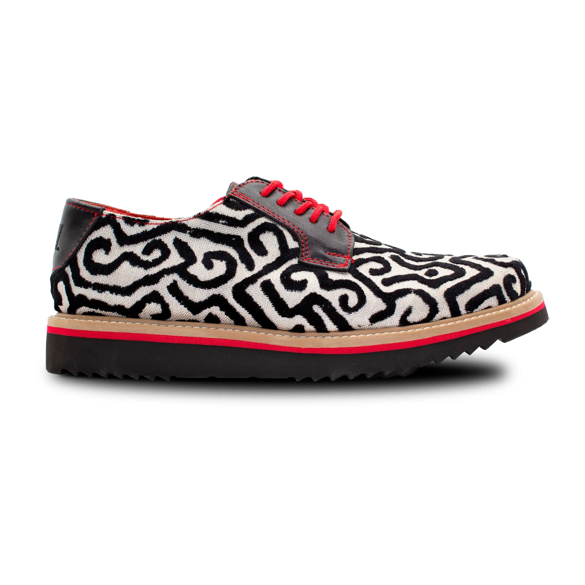 Discover the sophisticated charm of our Alexandra Black Derby, crafted from premium jacquard fabric imported from India 🌏 and meticulously woven on specialized looms. This exclusive design is elevated with suede and leather accents, plus a soft leather lining that guarantees all-day comfort.