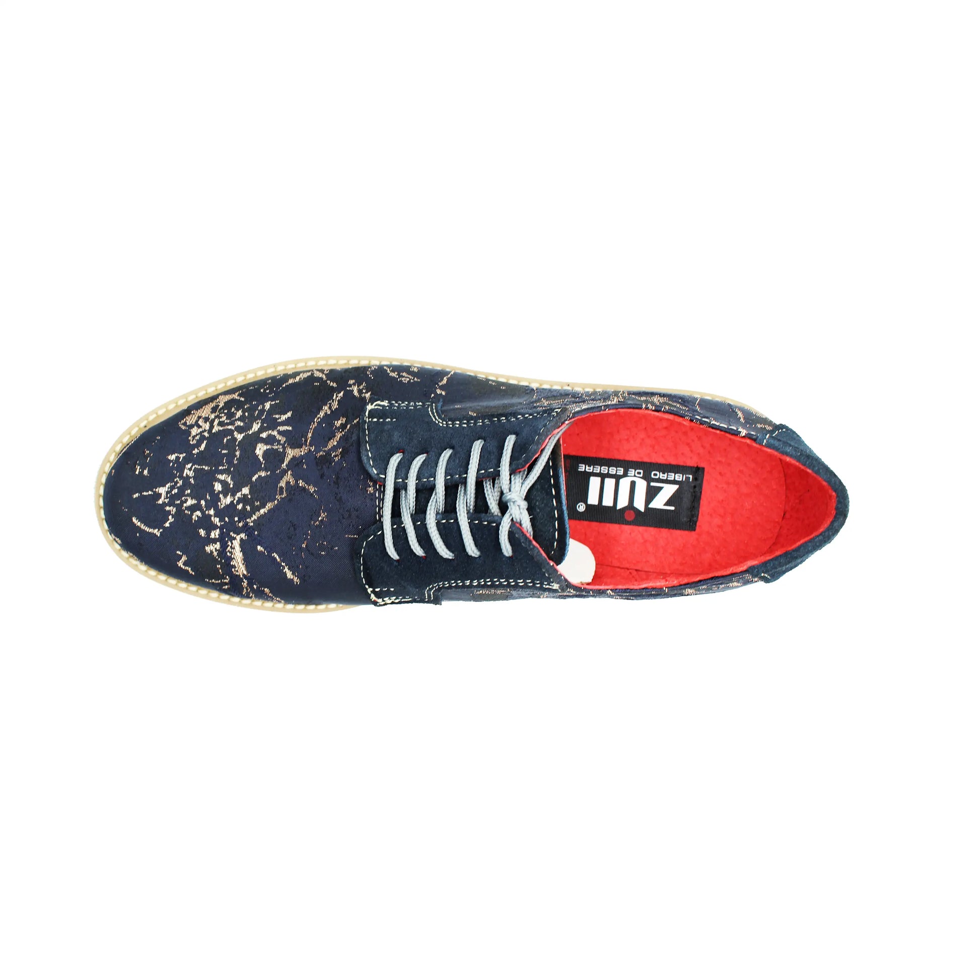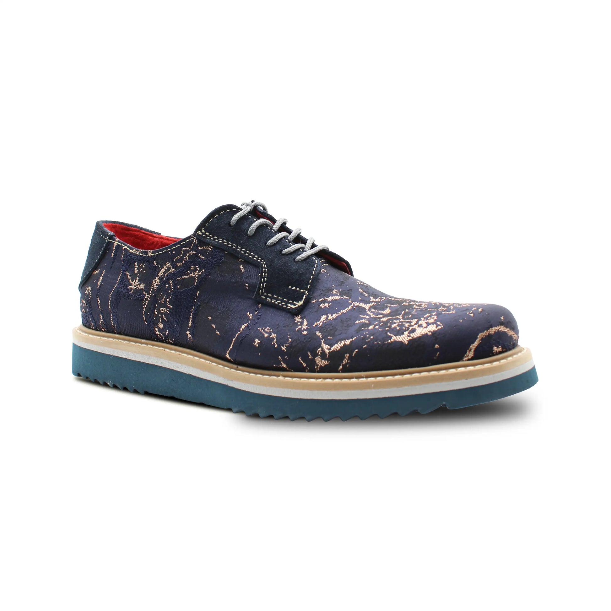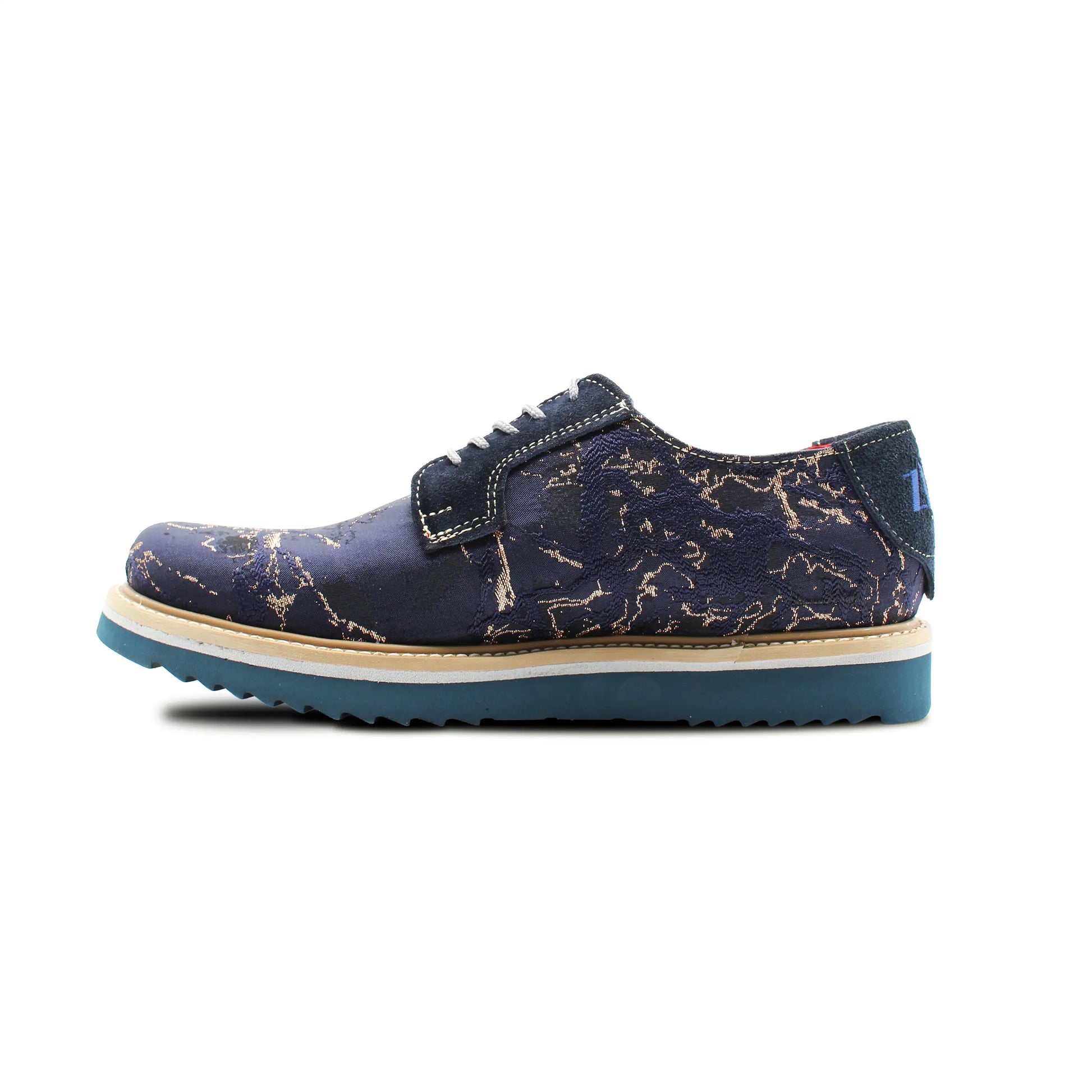 The RA-04 Lava Azul features a deep-blue upper with metallic lava-style streaks, creating a bold and distinctive visual effect. Genuine leather panels add structure, while the Italian ultralight technology sole ensures exceptional all-day comfort.