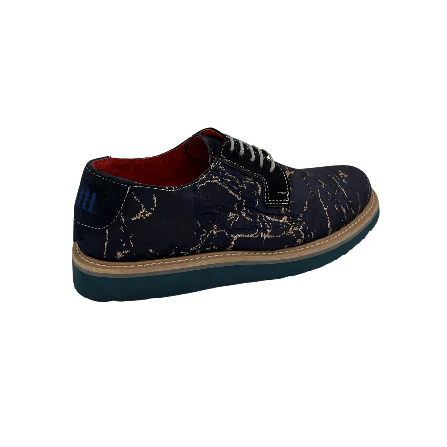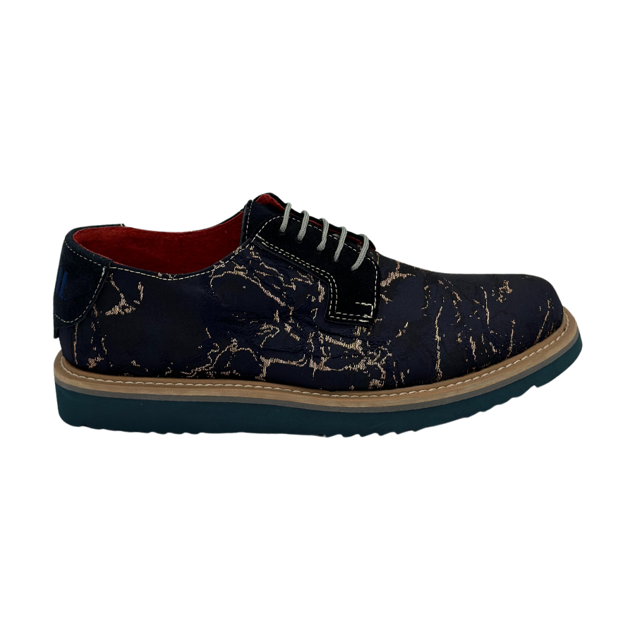 Derby para caballero corte textil tela tipica Mexicana hecha de material reciclado con aplicaciones en gamuza y forro de piel, suela ultraligera con tecnologia italiana de absorcion de impacto que la hace muy comoda y comfortable.