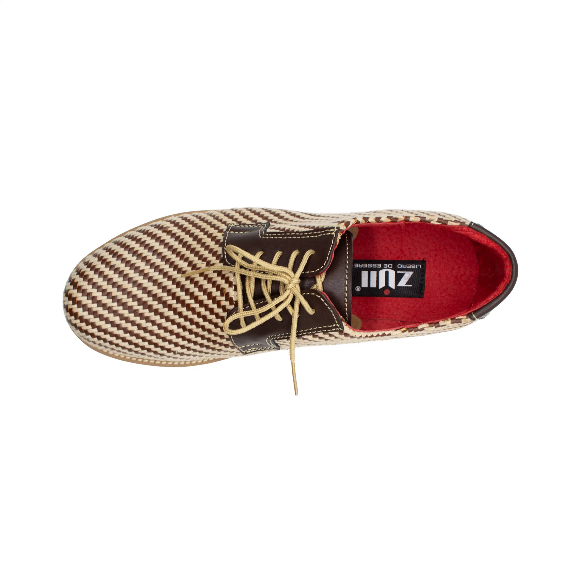 Discover the incomparable elegance of our Derby footwear for gentlemen, crafted from exquisite jacquard fabric sourced from India and meticulously woven on specialized looms. This exclusive design stands out with its suede and leather applications, complemented by a leather lining that ensures unparalleled comfort.