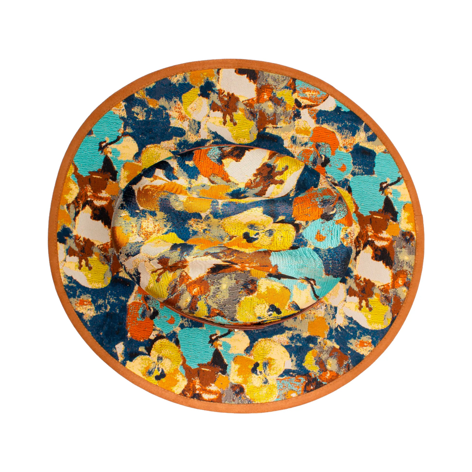 The Mosaico Hat is an accessory that transforms your look into a wearable work of art. Crafted from high-quality textiles with a multicolor mosaic-inspired pattern, every detail reflects creativity and originality. The black leather band adds an elegant contrast, making this hat a versatile complement to urban, casual, or artistic outfits.