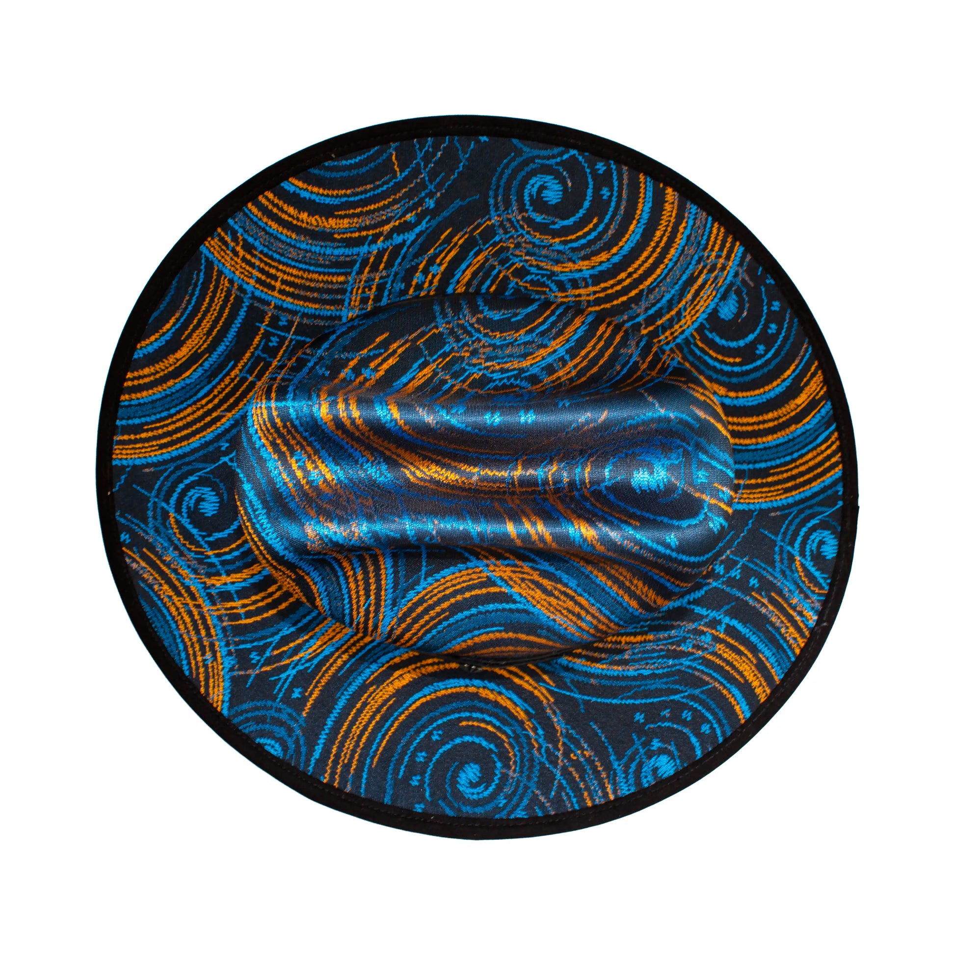 The Torbellino Hat is an accessory that blends art and dynamism in a modern, eye-catching design. Crafted from high-quality textiles with a multicolor swirl-inspired pattern, every detail adds movement and energy to your look. The black leather band offers contrast and elegance, making this hat a perfect complement for urban, creative, or bold styles.