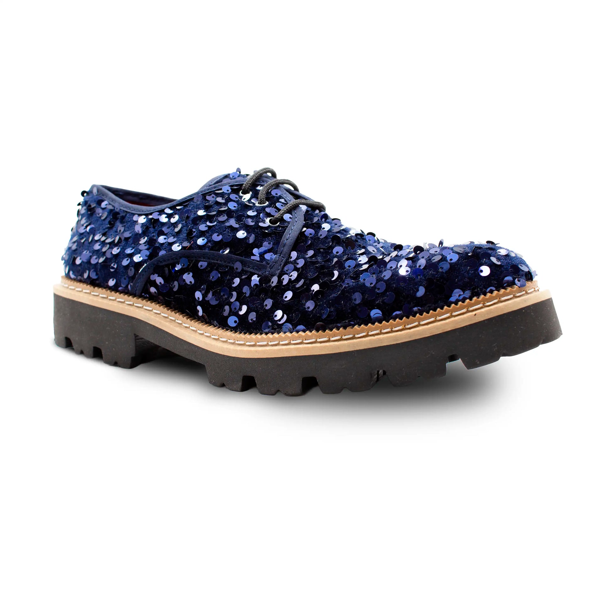 A shoe that doesn’t just complete your look—it transforms it into a statement. Lentejuela Marino — Shine and personality in every step.