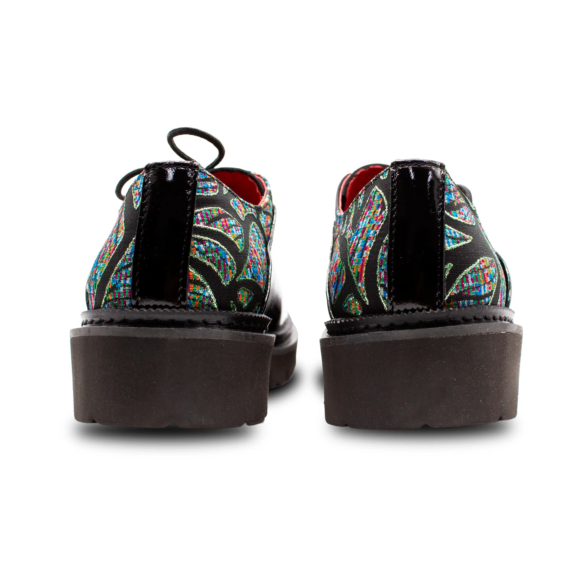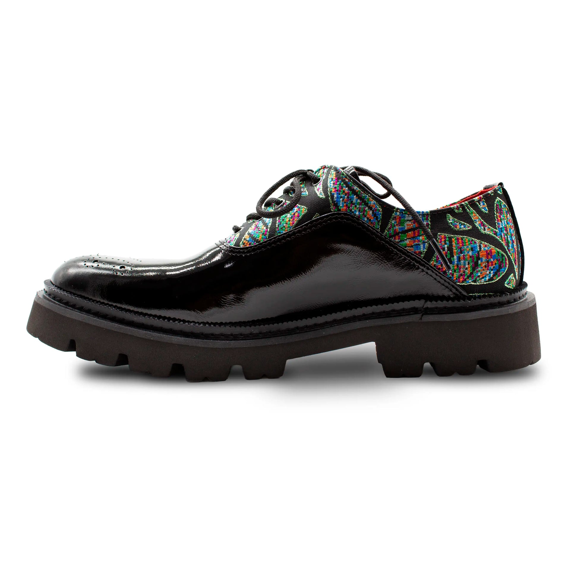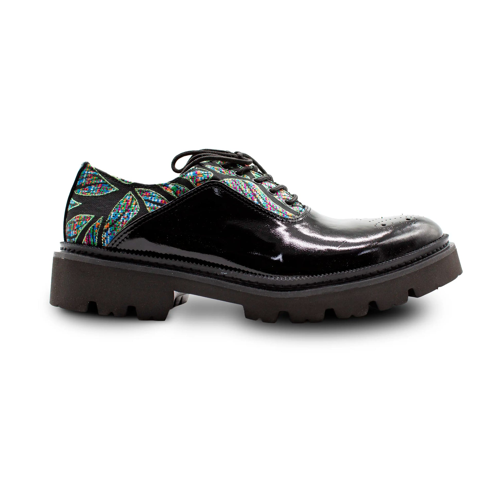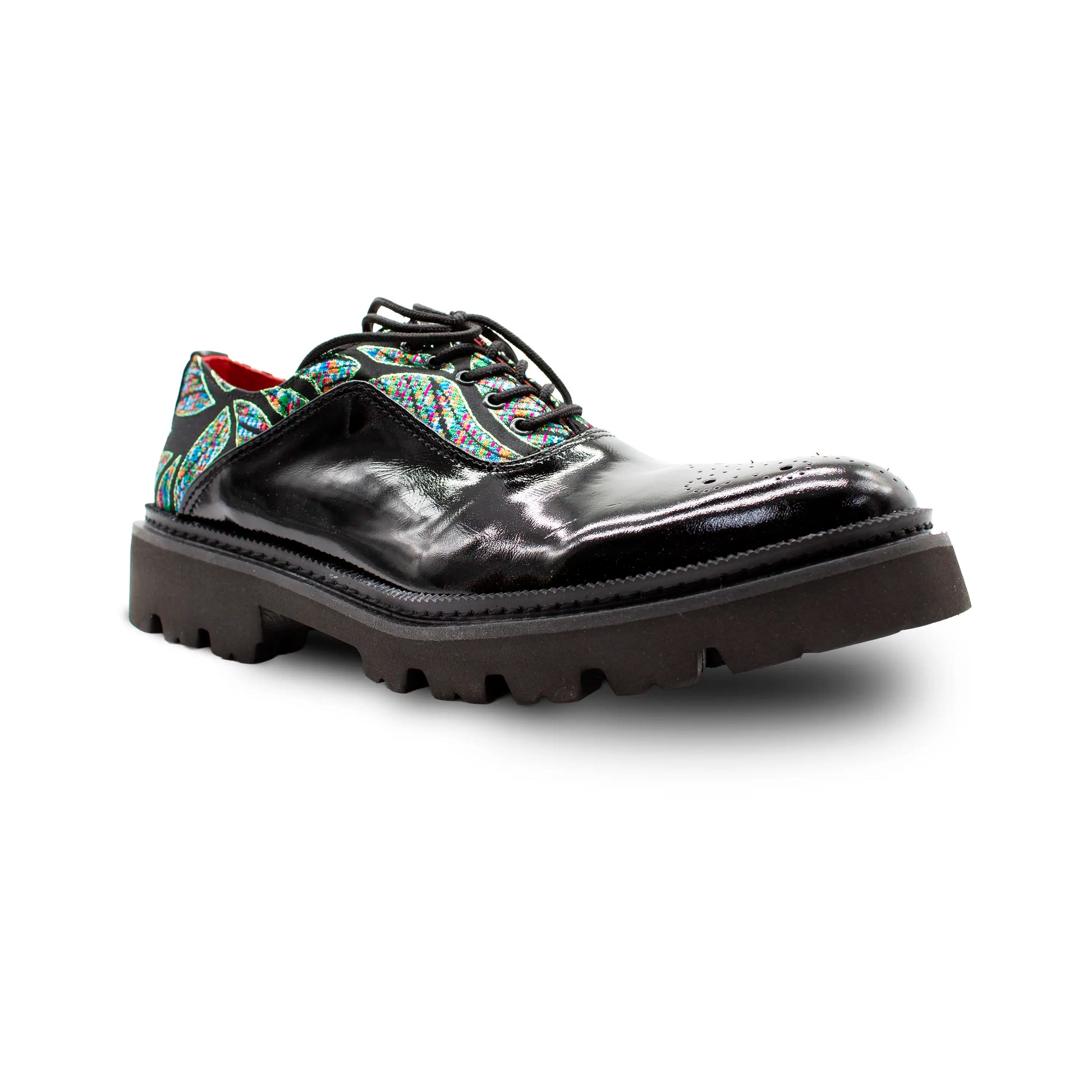 The Alto Brillo Hojas Verdes blends high-gloss sophistication with a nature-inspired design that’s truly one of a kind. Crafted from premium black leather, it features multicolor green leaf-patterned textile with raised texture and depth—bringing freshness and personality to every step. Its minimalist, streamlined silhouette transitions effortlessly from elevated casual looks to semi-formal outfits that call for a modern, confident touch.